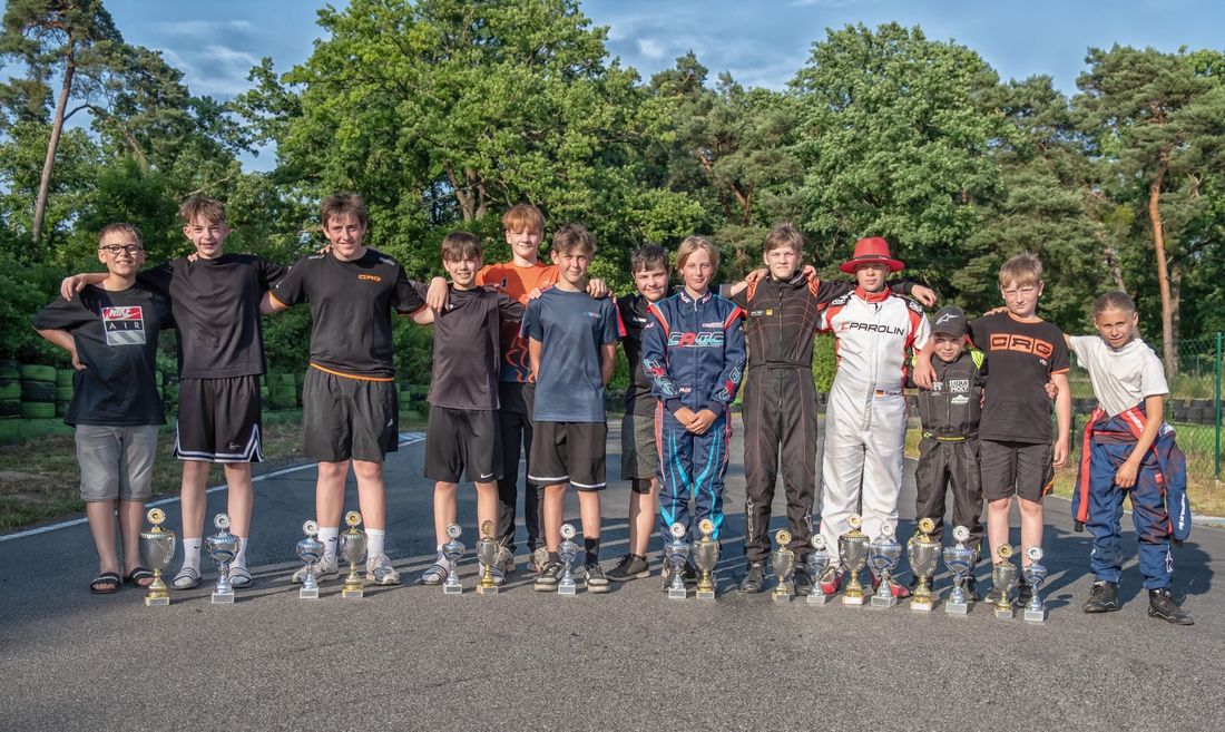 Bereits in der Vorschau waren sommerliche Temperaturen abzusehen, am Renntag stieg das Quecksilber teilweise über 35 Grad. Dies stellte eine besondere körperliche Herausforderung dar, während der enge Kurs des Waldparkrings die fahrerischen Fähigkeiten auf die Probe stellte. Der jüngste Fahrer Finn Schäddel geriet bereits im Zeittraining unverschuldet in einen Unfall, konnte aber nach Richtarbeiten zweimal P1 in der Rotax-Micro Klasse verbuchen. Bei den Rotax-Minis ging es auch nicht ganz ohne Schäden, das Kart von Marvin Höbel musste ebenfalls wieder gerade gebogen werden, er konnte damit aber beide Läufe auf P8 abschließen. Toni Stürmer, ebenfalls Rotax-Mini, fuhr zweimal auf P7 und war abschließend froh einen schadfreien Renntag abzuschließen. Rotax-Mini Pilot Mats Stein konnte mit P4 und P5 in die Pokalränge fahren. In den Juniorenklassen lagen Freud und Leid dicht beieinander: Für die Rotax-Junioren konnte Max Schick mit Klassenbestzeit im Quali und zweimal P1 einen astreinen Hattrick einstreichen.