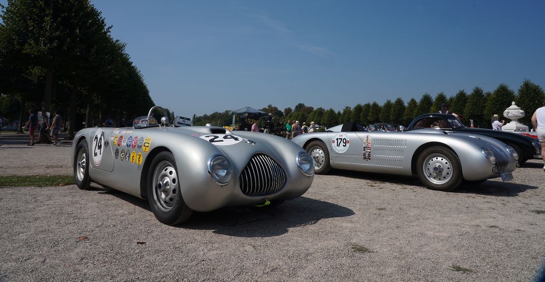 Ein Concours d’Elegance lebt von Kontrasten, die im Rennsport und auch im Alltag nicht aufeinander treffen, obwohl meist die gleiche Intention dahinter steckt: sich mit Motorkraft möglichst effektiv zu bewegen. Die Ausführung solcher Sportwagen hängt essentiell mit den Rahmenbedingungen zusammen – in knappen Zeiten sehen die Fahrzeuge anders aus, als mit freiem Budget. In den dreißiger Jahren waren die kleinen Hubraumklassen bis 1 Liter das Betätigungsfeld von Herstellern und Privatfahrern, ganz besonders DKW, die auch im Zweiradsport erfolgreich waren. Leichtbau und Minimalismus prägten diese 2-Takt-Renner bis zur Mitte der 50er Jahre. Dem kleinen F-1 (für erster Frontantrieb), seinen Nachfolgern F 5 und anderen genügten bis zu 1 Liter Hubraum für mehr als 50 PS und 150 km/h. Erstmals treffen sich F-5-Sportwagen, ein F-9-Rennsportwagen, ein Drews-DKW, der DKW-Monza und der 1000 SP für einen einmaligen Rückblick. In der Nähe der Orangerie ist der Überfluss zu Hause: der Reigen der Supersport-Autos beginnt mit dem Ferrari F40 von 1988, umfasst auch den Porsche Carrera GT mit V-10-Motor und Raritäten von Artega, Dallara, McLaren, Lamborghini und Aston Martin.