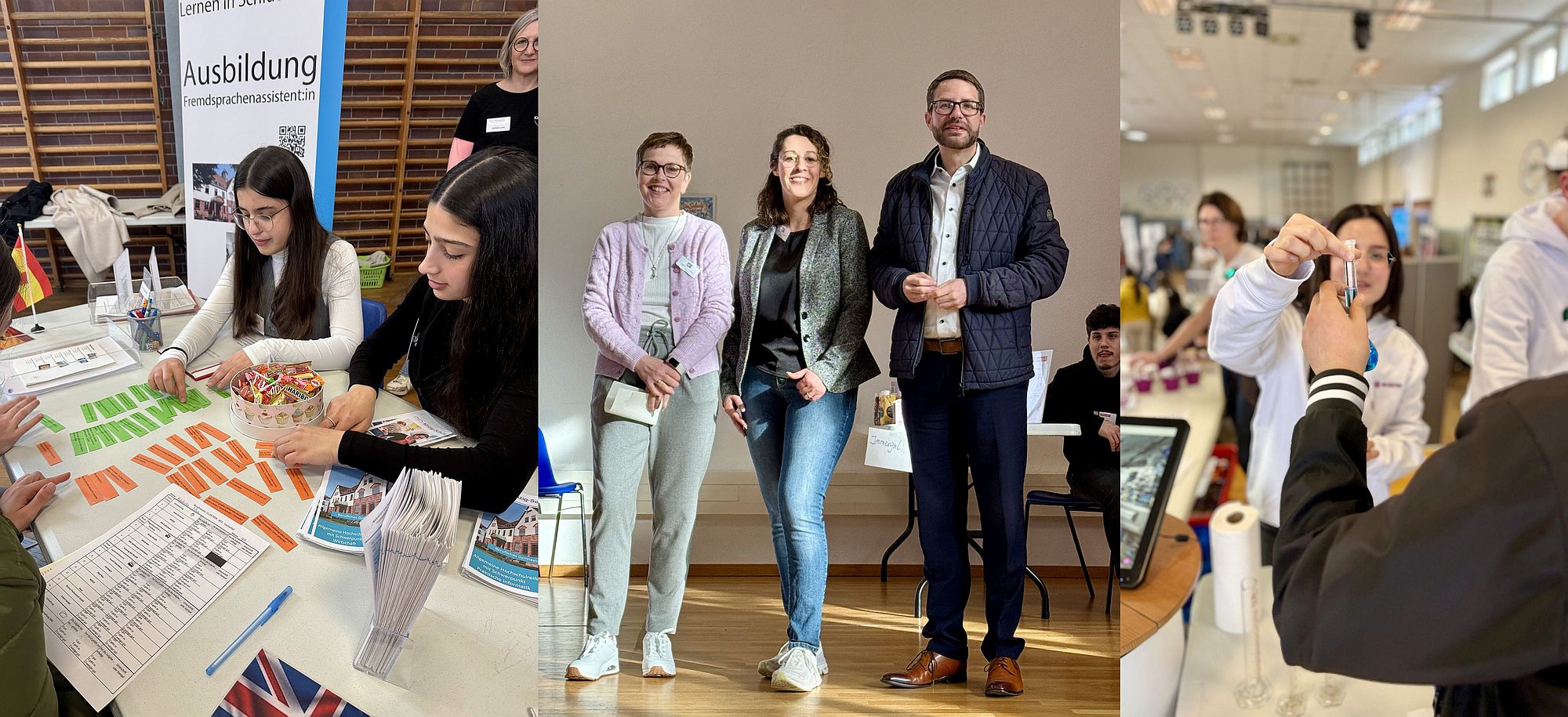Vertreten waren Betriebe aus den Bereichen Service, Pflege, Handwerk, Büro, Handel sowie aus der Chemie- und Lebensmittelbranche. An den Ständen konnten sich die Jugendlichen umfassend über Ausbildungsberufe, Praktikumsmöglichkeiten und Karrierewege informieren. Besonders beliebt waren die Angebote zum Ausprobieren und Mitmachen: Viele Firmen hatten Materialien, Werkzeuge oder kleine Aufgaben mitgebracht, sodass die Schülerinnen und Schüler Berufe nicht nur kennenlernen, sondern auch direkt erleben konnten.
