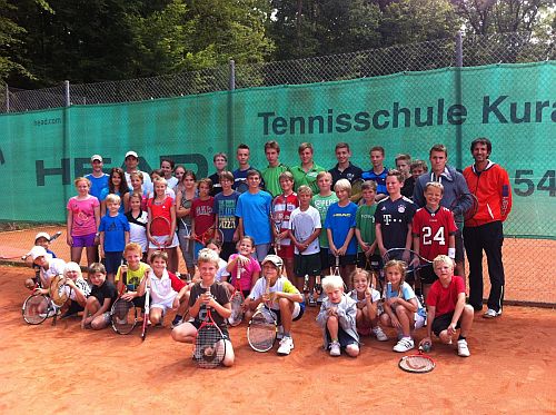 Kein Wunder, wartet auf die Kinder im „Svens Camp“ doch ein gut durchdachter Trainingsplan mit 4 x 5 Stunden Technik-, Taktik-, Koordinations- und Konditionstraining, viel Spaß und leckeres Essen vom Clubwirtsehepaar Marion und Jörg Schmitt. Dieses Jahr liefen zum Begrüßungslauf in den Stadtpark insgesamt 48 Kinder im Alter von 4 bis 15 Jahren los, darunter auch Gäste aus anderen Tennisvereinen. Ein Teil des Konzepts ist natürlich eine sorgfältige Gruppeneinteilung, die eine gezielte Förderung sowohl von Kaderkindern, als auch von den Kleinsten oder Anfängern ermöglicht. Und so füllte sich die Anlage mit 10 Gruppen von fleißigen, motivierten und lernwilligen Kindern, die von insgesamt 10 Trainern unterrichtet wurden. Neben vielen lustigen Momenten und mindestens genauso viel Eis gab es auch zwei richtige Höhepunkte: einen gemütlichen Grillabend mit einem anschließenden Zeltlager und das Abschlussturnier in drei verschiedenen Klassen, das einige interessante Begegnungen zwischen Spielern aus verschiedenen Mannschaften brachte. Auch wenn das Camp an sich bereits ein Geschenk der Eltern und der Trainer an die Kinder ist, so gehörten auch hier, wie zu jeder Siegerehrung, Urkunden und HEAD T-Shirts, über die sich alle trotz leicht durchschimmernder Müdigkeit riesig gefreut haben.