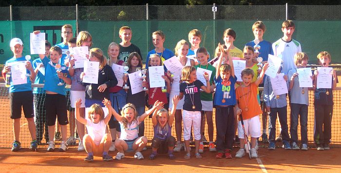 Foto: Gelungener Saisonabschluss 2012 – die Teilnehmer bei den TCR-Jugendclubmeisterschaften hatten sichtlich Spaß am Tennis.