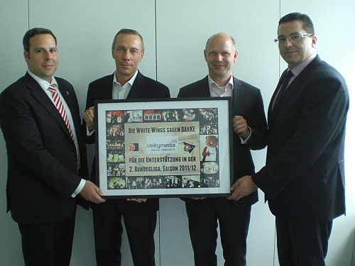 Unitymedia beteiligte sich immer wieder an Aktivitäten wie dem Imagefilm und Werbespots der White Wings und trug einen großen Teil dazu bei, dass die Hanauer den Weg zurück in die 2. Bundesliga gefunden haben. Zuletzt präsentierte der langjährige Partner die Neuverpflichtung Marco Völler. Aber auch umgekehrt profitiert das Unternehmen von den Basketballern. „Es ist sicherlich eine Partnerschaft, aus der beide Seiten ihre Vorteile ziehen“, kommentiert André Schloemer, Vizepräsident Brand Management & Corporate Communication, die Fortsetzung der Zusammenarbeit. Die Marke Unitymedia gewinne durch das Engagement in der Brüder-Grimm-Stadt in der gesamten Region an Stärke. „Wenn man sieht, mit welcher Leidenschaft und Professionalität das Projekt Bundesliga-Basketball in Hanau betrieben wird, wollen wir unseren Teil dazu beisteuern und diesen viel versprechenden Weg mitgehen“, ergänzt Schloemer. Die angesprochene Leidenschaft sei auch auf der vom Management als Dankeschön für die Kooperation in der abgelaufenen Saison überreichten Collage zu erkennen. Diese Leidenschaft wollen die White Wings dann gemeinsam mit Unitymedia beim Saisonauftakt wieder entfachen.