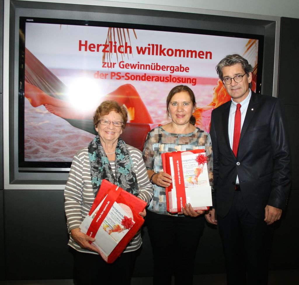 Foto (von links): Über das Losglück freuen sich Heidrun Stengel, Natalie Kampa und Sparkassenvorstandsvorsitzender Dr. Ingo Wiedemeier.