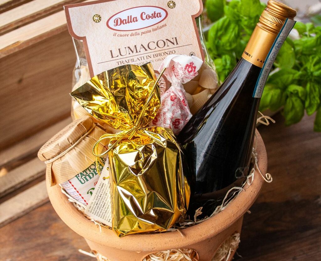 Finden Sie ausgefallene und stilvolle Geschenke für Ihre Lieben, Freunde oder Geschäftspartner. Bei La Bottega Toscana aus Linsengericht dreht sich alles um ausgesuchte Feinkost aus Italien. Antipasti, handgeschöpfte Nudeln, edle Gewürze oder erlesene Öle aus Italien. Und dazu ein guter Rotwein oder Grappa. All die Köstlichkeiten verpackt Familie Hofacker, die seit 25 Jahren ihren Feinkosthandel führen, zu wunderschön arrangierten Präsenten Körben, Terracottaschalen, Holzkisten oder versandfertigen Wellenkartons. Hier gibt es für jede Gelegenheit ein passendes Geschenk.