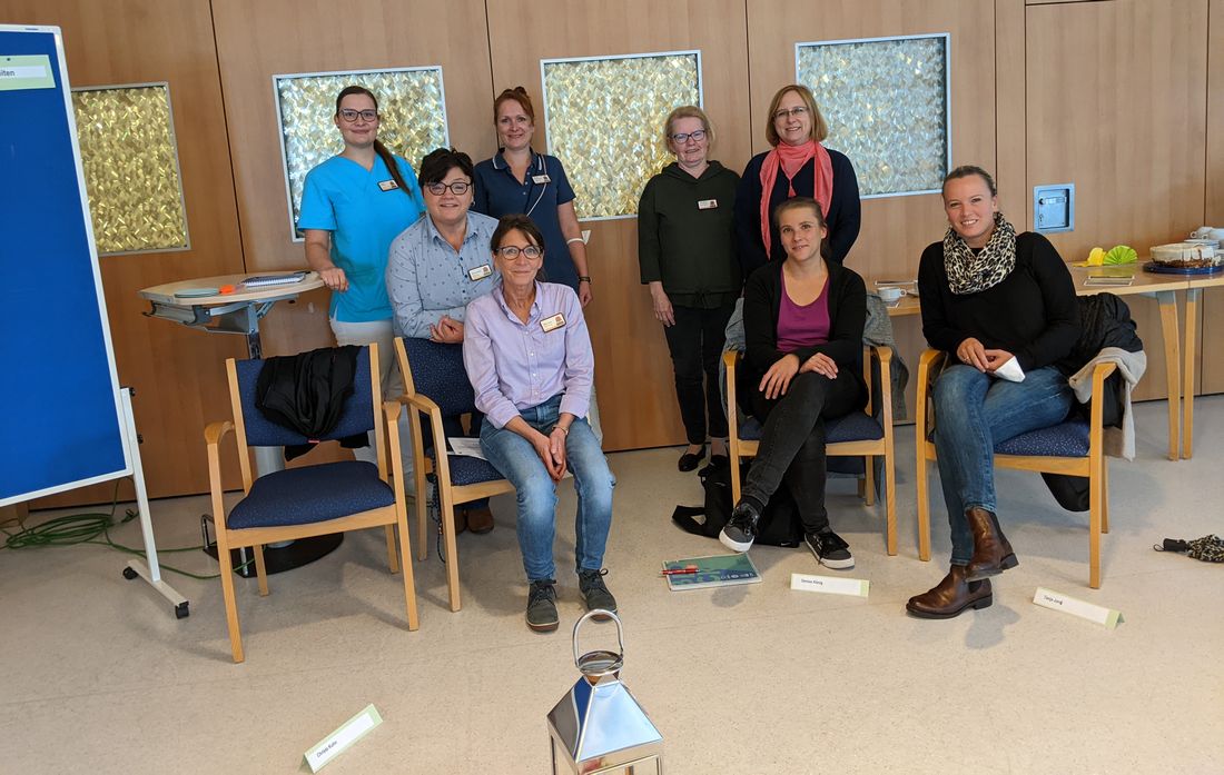 Silvia Fuß, Leiterin des EPP-Teams (vorne links) und Christa Kuhn (stehend dahinter) luden die Palliative Care Fachkräfte der APZ-MKK zu einem Austausch ein.