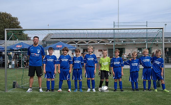 Die jungen Kicker bedanken sich recht herzlich bei René Schröder für die schicken, neuen in blau leuchtenden Trikots. Sicher wird man zukünftig mit Hilfe des neuen Hauptsponsors auch einige Taxi-Ausflüge planen.