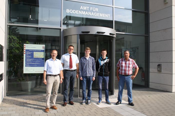 Foto (von links): Ausbildungsleiter Thomas Müller, Amtsleiter Dr. Andreas Schweitzer, Azubi Oliver Hahn, Azubi Lukas Becker, Ausbilder Norbert Wurzel.