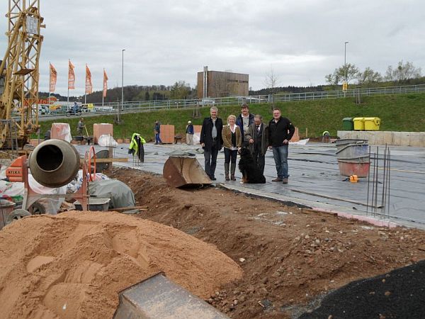 Hier auf dem Grundstück der Firma Heizöl Becker, in der Industriestraße, direkt an der Auffahrt Auweg-Brücke entsteht derzeit ein 1-geschoßiges Gebäude mit rund 1000 Quadratmeter Verkaufsfläche und einem großzügigen Parkplatzangebot.