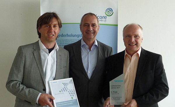 Gleich an zwei Siemens-Standorten wurde der Umicore-Geschäftsbereich als Lieferant des Jahres 2011 bzw. 2012 ausgezeichnet: in Berlin erzielte TM den dritten, am Standort Nürnberg sogar den ersten Platz. Zur Bewertung der Lieferanten wurden von Siemens unter anderem die Kriterien Qualität, Technologie, Logistik und Einkauf geprüft. Entscheidend für die Auszeichnung war weiterhin, dass von den Lieferanten eine für beide Seiten akzeptable Umsetzung eines Siemens-internen Logistikkonzepts gefunden wurde. Umicore erreichte an beiden Siemens-Standorten jeweils Gesamtergebnisse von über 90 Prozent und unterstreicht damit seinen Anspruch, Produkte zu höchster Qualität und Kundenzufriedenheit zu liefern. „Diese Auszeichnung durch Siemens zeigt ein weiteres Mal, wie entscheidend das Engagement der Mitarbeiterinnen und Mitarbeiter für unseren Geschäftserfolg ist. Als nachhaltig ausgerichtetes Unternehmen ist unser Anspruch natürlich, unsere Leistung weiter zu verbessern – deshalb streben wir auch in diesem Jahr eine Auszeichnung durch Siemens an“, erklärte Beuers.