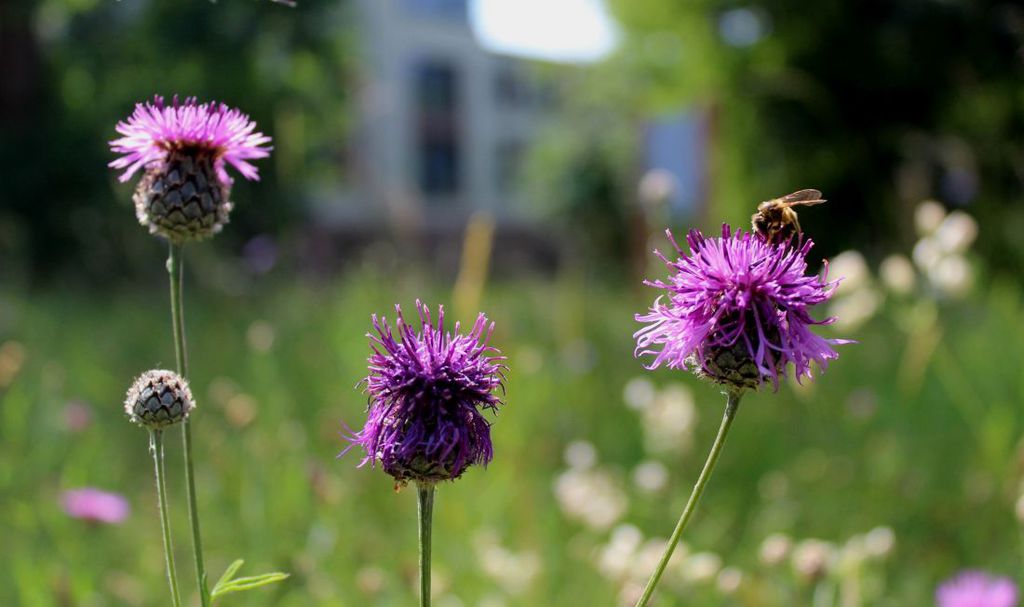 Foto: Die Blumenwiese am Landratsamt ist inzwischen eine attraktive Futterquelle für Bienen.