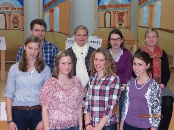 Am Mittwoch, dem 6. Februar, wurden die Qualifikationsrunden an der Schule durchgeführt. Die Klassensieger der sechs Klassen debattierten und sprachen sich einmal für und einmal gegen das Verbot aus, mussten also unterschiedliche Perspektiven einnehmen. Nach sechs starken und sehr überzeugenden Debatten wählten die vier Juroren Katja Asimyadis, Sarah Kiefer, Christina Petry und Wolfram Erb nach den vier Wettbewerbskriterien Sachkenntnis, Ausdrucksvermögen, Überzeugungskraft und Gesprächsfähigkeit die vier Siegerinnen Anna-Lena Simon, Katharina Faupel, Maria Lechthaler und Sabrina Schneider aus, die in die Endausscheidung kamen.