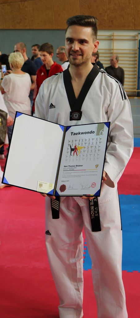 Blobner konnte in allen Prüfungsfächern souverän überzeugen und bewies einmal mehr, dass ein starker Wille der Weg zum Ziel ist und erreichte so hochverdient und mit einem sehr guten Ergebnis den 6. Dan. Somit ist er der jüngste 6. Dan Großmeister Deutschlands. Jetzt gilt es, das Wissen und Können wie bisher an die Schüler des Vereins weiterzugeben, um somit das Niveau des Clubs weiterhin hoch zu halten.