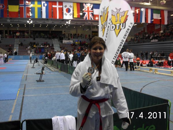 Die erst 16jährige Linda Zschoch ging bei den Damen bis 73kg an den Start und hatte es im ersten Kampf mit der Vize-Europameisterin Julia Swietkowiak aus Wuppertal zu tun. Mit einer taktischen Meisterleistung bezwang Linda ihre Kontrahentin ungefährdet mit 2 zu 0. Im darauffolgenden Halbfinale konnte Linda weiter befreit auftrumpfen, so dass ihr Julia Kröndl aus Altmannstein nicht den Weg ins Finale versperren konnte. Nach einem sauber geführten Kampf zog Linda in das Finale der Damen ein. Hier traf sie auf die mehrfache WM-Medaillengewinnerin Melda Akcan aus Nürnberg. In diesem Kampf musste sie sich der starken Nürnbergerin klar geschlagen geben. Nichts desto trotz ist der Gewinn der Deutschen Vizemeisterschaft ein sensationeller Erfolg, vor allem wenn man bedenkt, wen Linda alles hinter sich gelassen hat, so die Aussage der Trainer.
