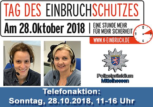 Die Fachleute in Sachen Sicherheit und Einbruchsschutz sind zwischen 11 und 16 Uhr telefonisch unter der Rufnummer 0641/7006-5555 erreichbar. Wie kann ich mein Haus/meine Wohnung sichern, was ist sinnvoll? Was kann ich denn tun? Wo bekomme ich das notwendige Material und wer baut es ein? Sind Maßnahmen zur Erhöhung der Sicherheit von Haus und Wohnung eigentlich bezahlbar? Gibt es dafür auch staatliche Unterstützung (KfW)? Nützt mir eine Alarmanlage etwas? Hält ein Hund die Einbrecher draußen? Was nützt die Jalousie? Gibt es bevorzugte Einbruchszeiten? Die Experten freuen sich über Ihre Anrufe und auf die Beantwortung dieser und vieler, vieler andere Fragen. Mehr zum Tag des Einbruchsschutzes steht im Internet unter https://k.polizei.hessen.de/303459952 oder unter www.k-einbruch.de.
