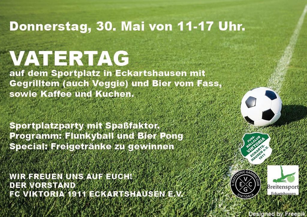 Früher wurden vom FC Viktoria regelmäßig Vatertags-Veranstaltungen durchgeführt. Nun lässt der Verein diese alte Tradition wieder aufleben. „Wir freuen uns auf jeden, den es am 30. Mai zu uns an den Sportplatz zum Vatertags-Grillen zieht. Jeder ist herzlich eingeladen, mit uns zu feiern, zu essen und zu trinken“, freut sich Tobias Steinmann aus dem Organisationsteam. „Kaffee und Kuchen wird es für je 1€ geben und auch Würstchen und Getränke verkaufen wir zum kleinen Preis.“