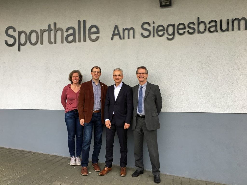 Foto: Das Archivbild vom Frühjahr dieses Jahres zeigt Landrat Jan Weckler bei einem Besuch des SV Fun Ball Dortelweil, mit mehr als 4.000 Mitglieder der zahlenmäßig größte Verein in der Wetterau. von links Sportwartin Martina Berberich, Landrat Jan Weckler, Erster Vorsitzender Stefan Kött und Schatzmeister Wolfhart Burdenski.