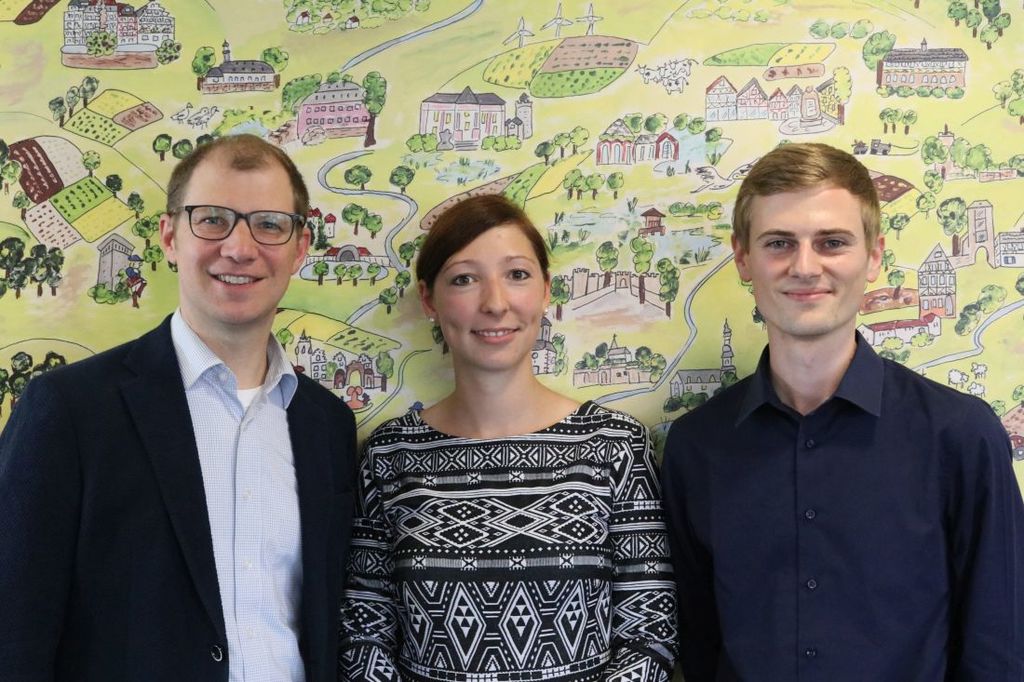 Foto: Landrat Jan Weckler, seit Jahresbeginn Vorsitzender des Naturschutzfonds Wetterau, mit Geschäftsführerin Franka Hensen und Dario Mauermann.