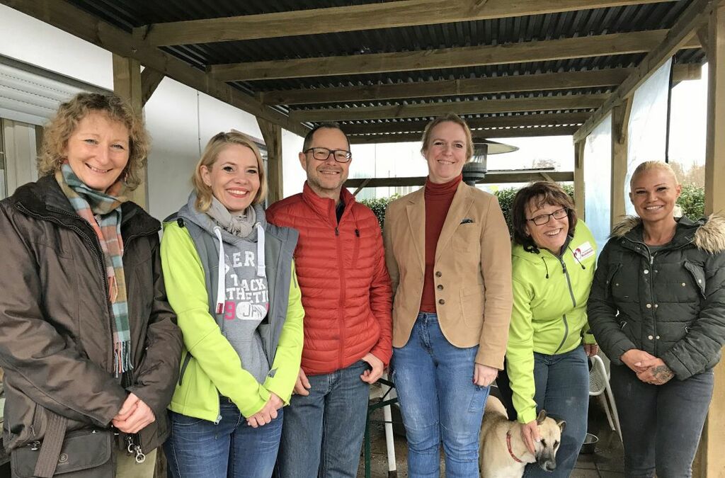 Foto: Erste Kreisbeigeordnete Becker-Bösch zu Besuch im Tierheim Butzbach. Von links: Stefani Klos, Hanne Kolb, Eckhard Volkmann, Gabi Stasch, Claudia Maid.