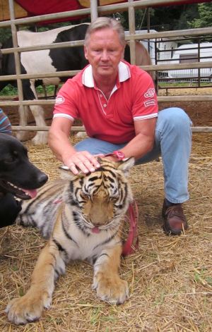 Ein gänzlich anderer Fall stellte die Kontrolle eines im Wetteraukreis gastierenden kleineren Zirkusbetriebes dar. In diesem hervorragend geführten Familienbetrieb waren nur wenige Tage vor der Kontrolle 4 sibirische Tiger geboren worden. Die Tiere wurden sofort vom Muttertier angenommen und entwickelten sich prächtig. Die tierseuchenrelevanten Maßnahmen, Impfung und Kennzeichnung mittels Mikrochip bei den Tigern wurden in Anwesenheit von Dr. Müller durchgeführt.