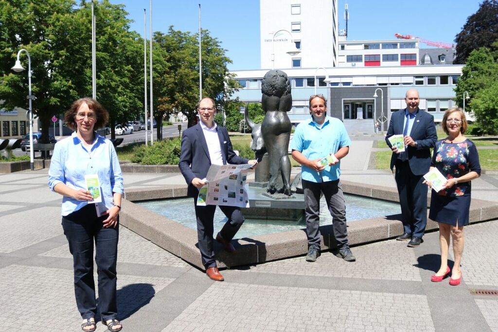 Foto (von links): Jessika Ippensen (Fachbereich Regionalentwicklung und Umwelt), Landrat Jan Weckler, Kreisarchäologe Dr. Jörg Lindenthal, Kreisbeigeordneter Matthias Walther und Cornelia Dörr , Geschäftsführerin der TourismusRegion Wetterau.