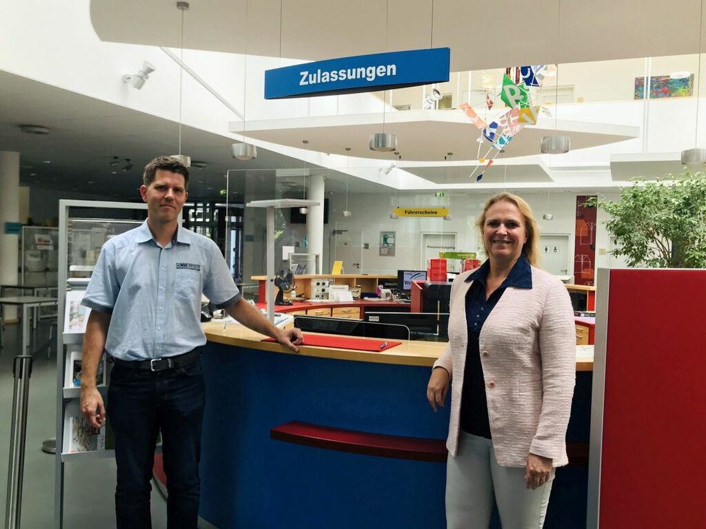 Foto: Erste Kreisbeigeordnete Stephanie Becker-Bösch und Marc Haugut von der Zulassungsstelle.