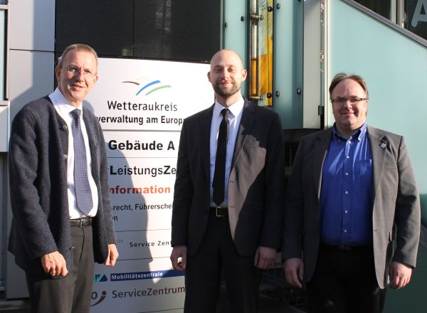 Das Projekt „Ausländerbehörde - Willkommensbehörde“ wird von einer wissenschaftlichen Forschungseinrichtung begleitet. Dieser Tage fand ein Abstimmungsgespräch mit Derya Can und Merlin Klein vom Institut für interkulturelle Management- und Politikberatung in Düsseldorf (imap GmbH) und Mitarbeitern der Kreisverwaltung statt. „Dort sorgt unser Fachdienstleiter Holger Gajewski als Projektleiter für die Umsetzung.“, so der Wetterauer Landrat.