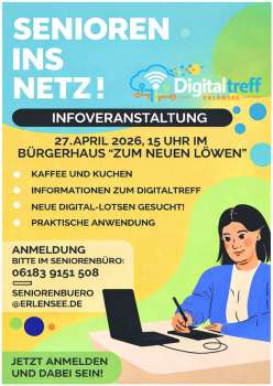 Der nächste „Digitaltreff für Senioren“ für alle, die sich näher mit ihrem Laptop, Tablet oder Smartphone auseinandersetzen möchten, findet am Montag, 04. Mai, von 10:00 - 11:30 Uhr im 1. Stock des DRK-Familienzentrums, Am Bürgerplatz 1, in Langenselbold statt.