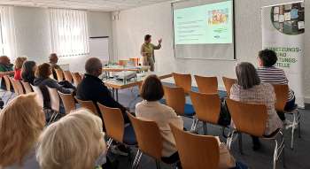 Teilnehmer bei der Informationsveranstaltung in der Rodenbachhalle mit der Referentin Marie-Rose Sander vom Betreuungsverein Main-Kinzig e.V..
