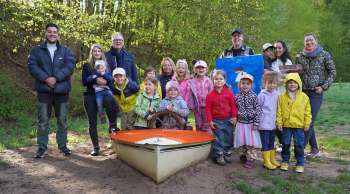 Große Freude bei den Waldgruppen der Kita Zwergenland: Die Kinder haben ein neues Spielboot bekommen.