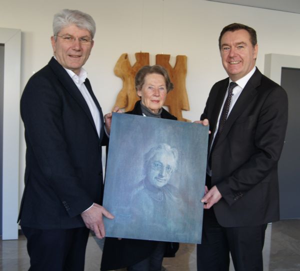 Das Portrait wird zukünftig in der Elisabeth-Schmitz-Bibliothek der Schule hängen. Dort ist in einer Vitrine auch die Aktentasche der ehemaligen Lehrerin ausgestellt, in der 2004 in einem Kirchenkeller das Original ihrer historischen Denkschrift "Zur Lage der deutschen Nichtarier" aufgefunden wurde.