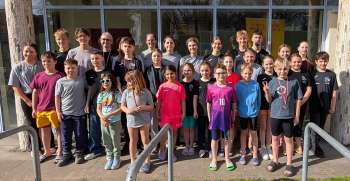 Die erfolgreiche Mannschaft der Gelnhäuser Wasserspringer (von links): Hinten Jakob Groß, Oskar Berg, Kyrylo Chepets, Mitte Emma Kraft, Jonah Sauer, Emily Krieger, Dieter Dörr, Marco Mazzone, vorne Frieda Alt, Rim Ascour, Hugo Euler, Raffael Mazzone.